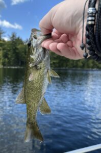 Image 6: I eventually caught a small mouth bass! However this would be the last fish of the day I caught as my girlfriend ended up beating me 8-7. However we both had an amazing day out on the water catching fish.